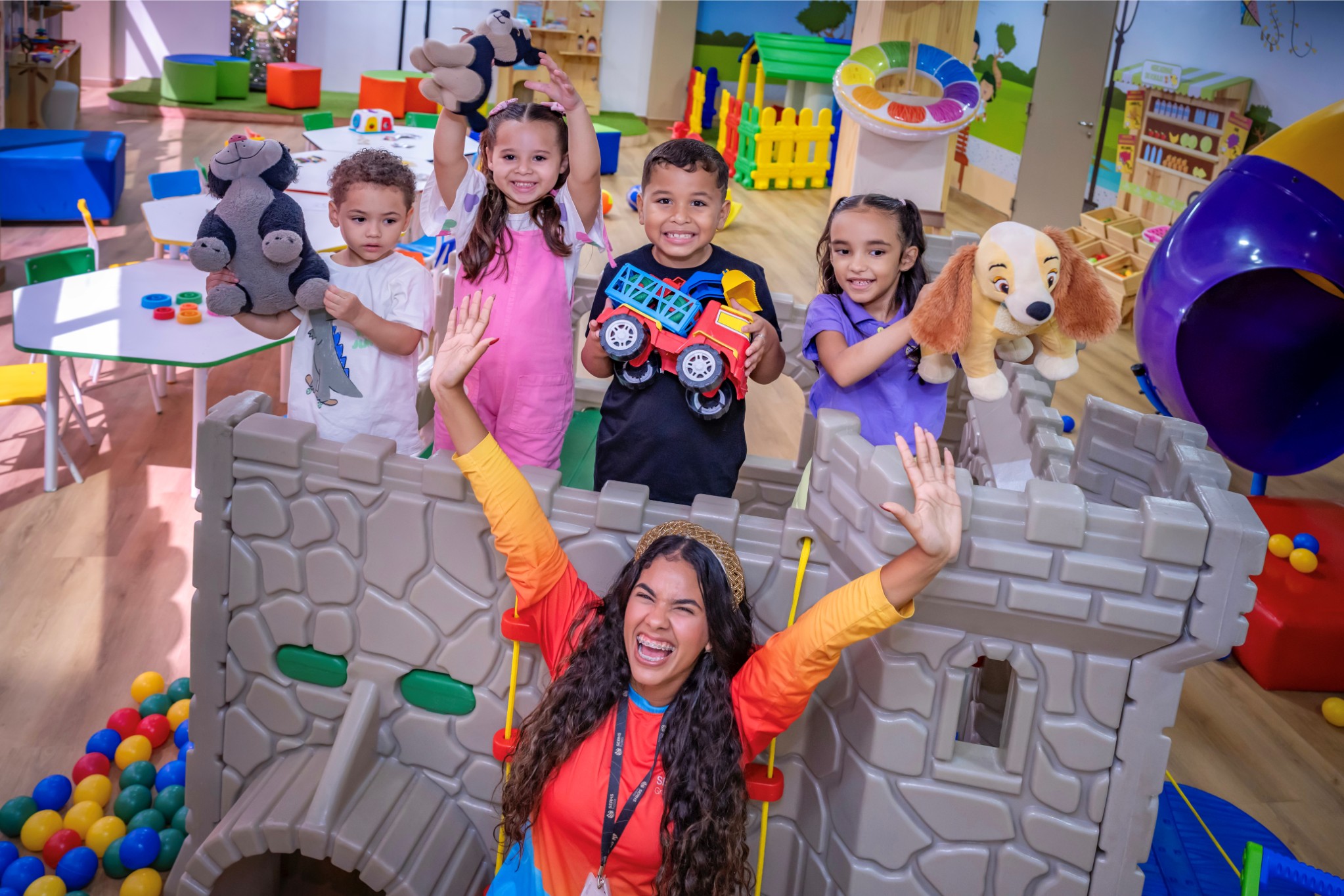 Tudo isso acompanhado pela equipe de recreadores, que torna cada momento ainda mais alegre e inesquecível para os pequenos.