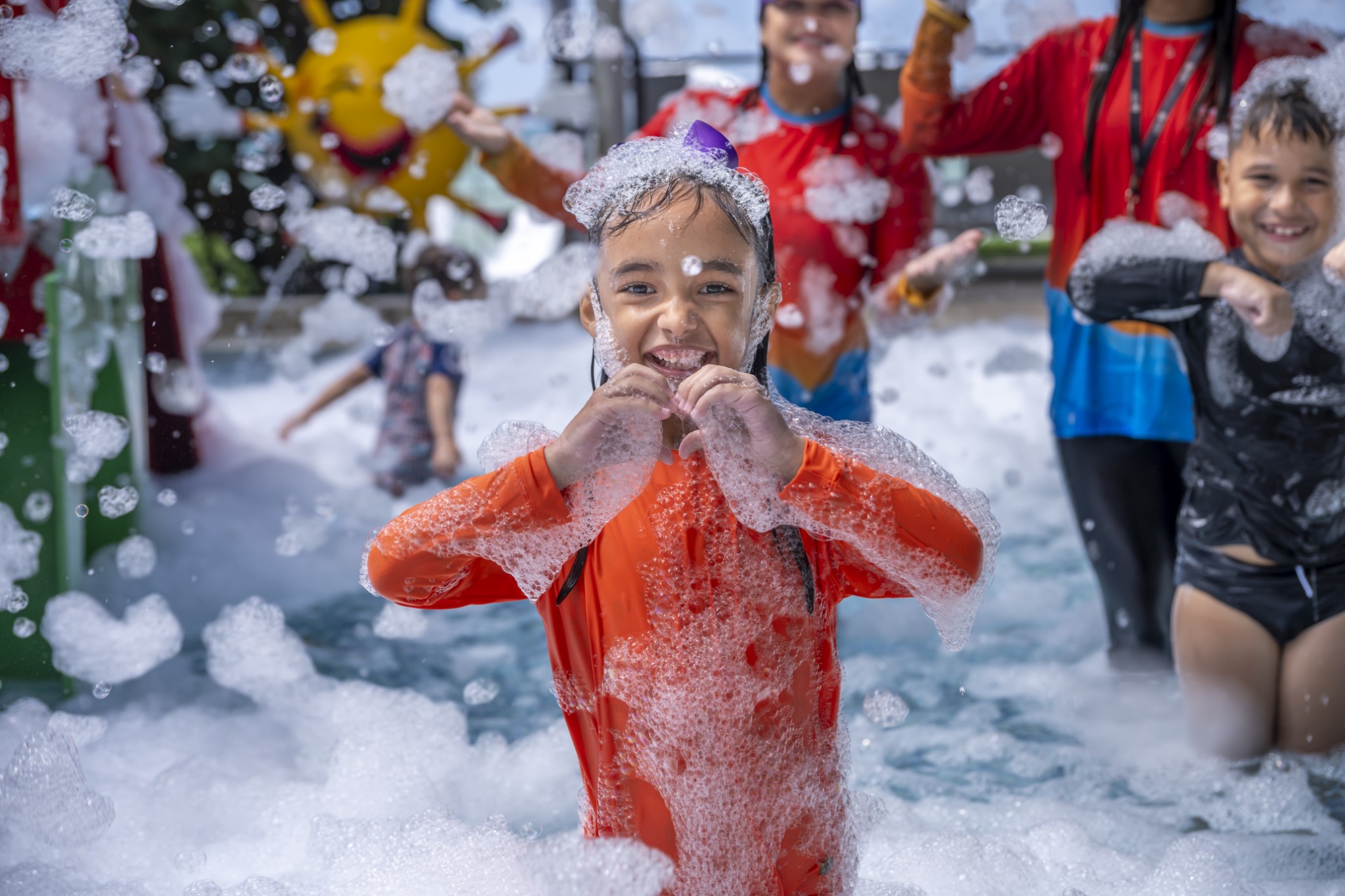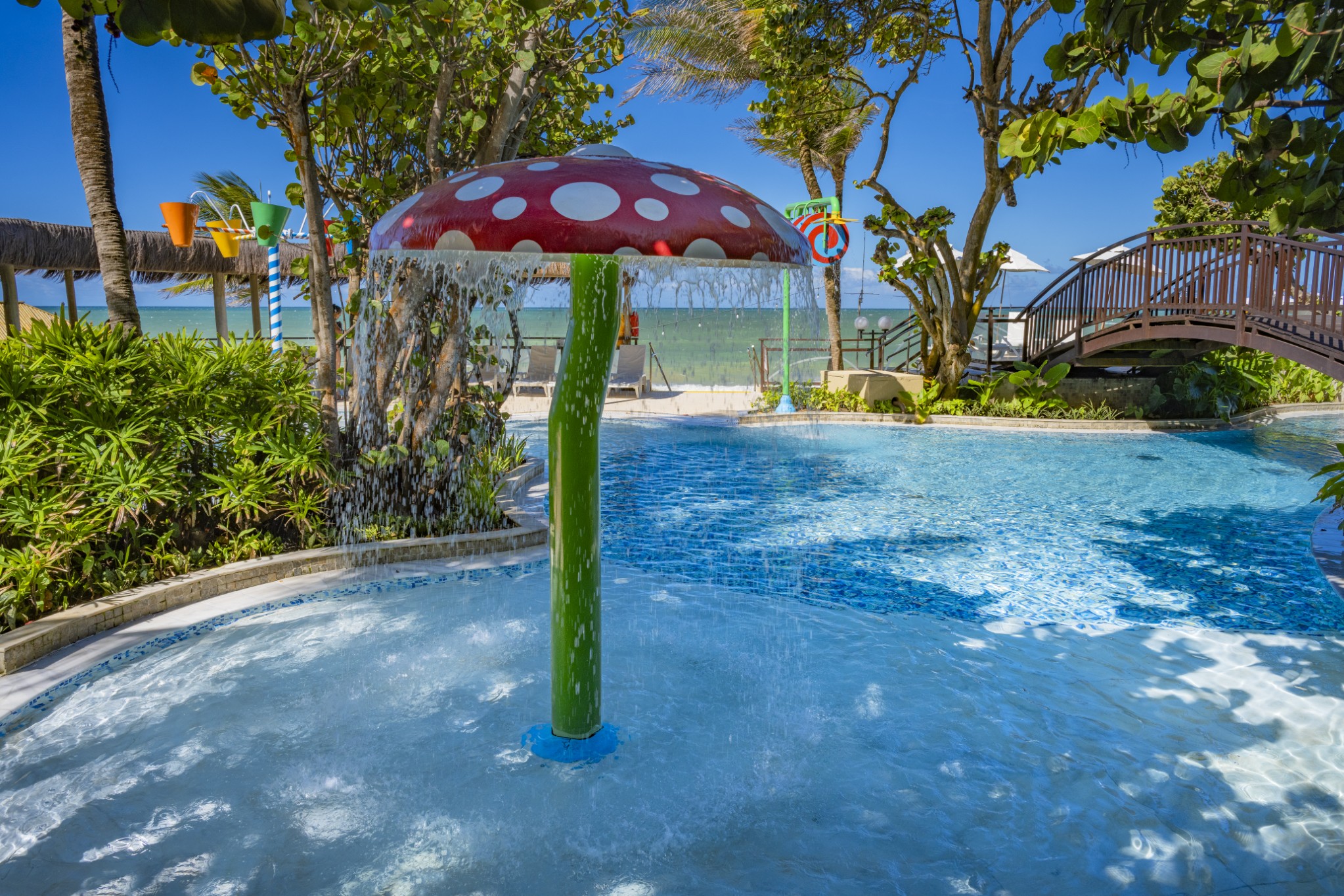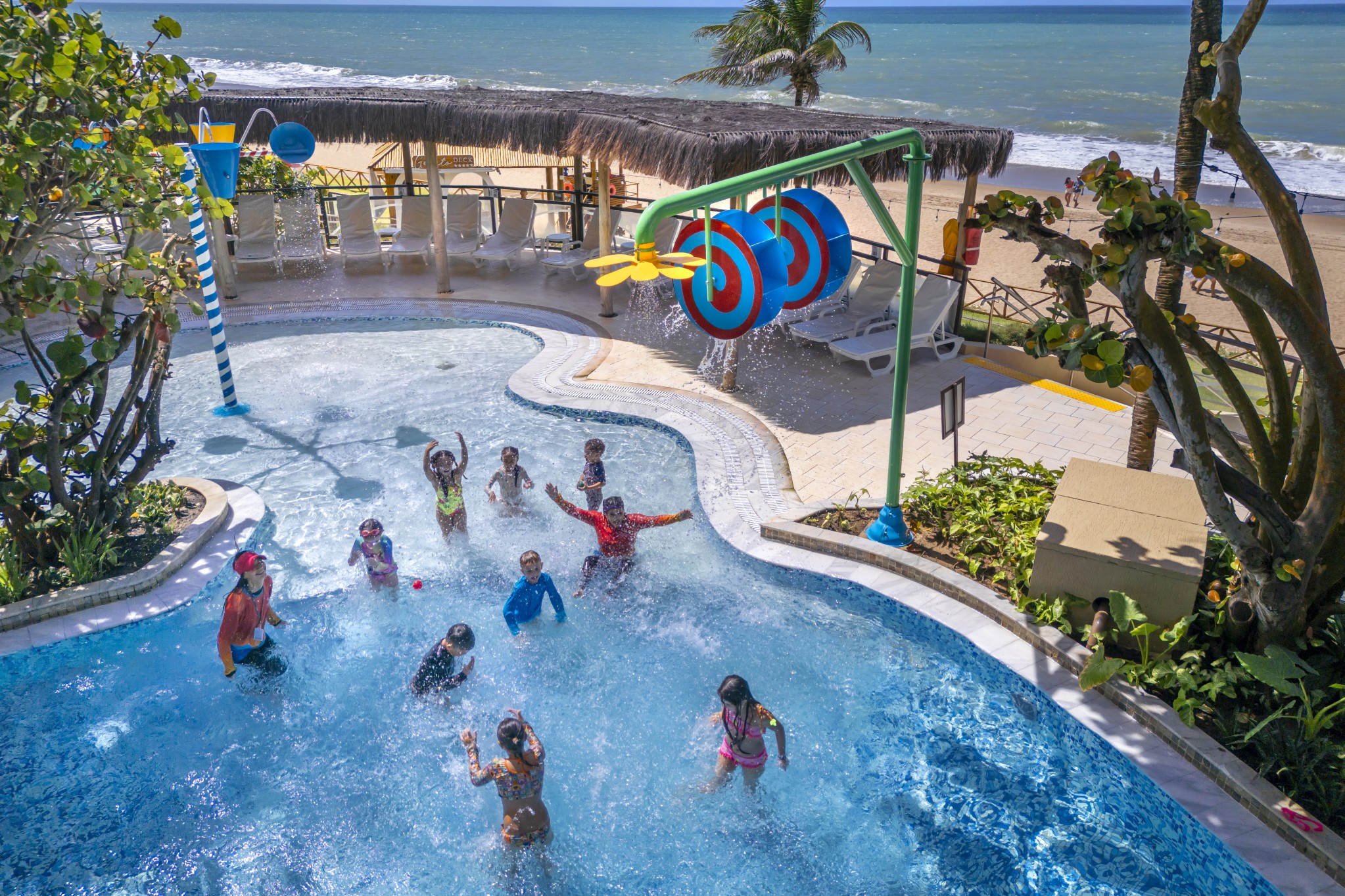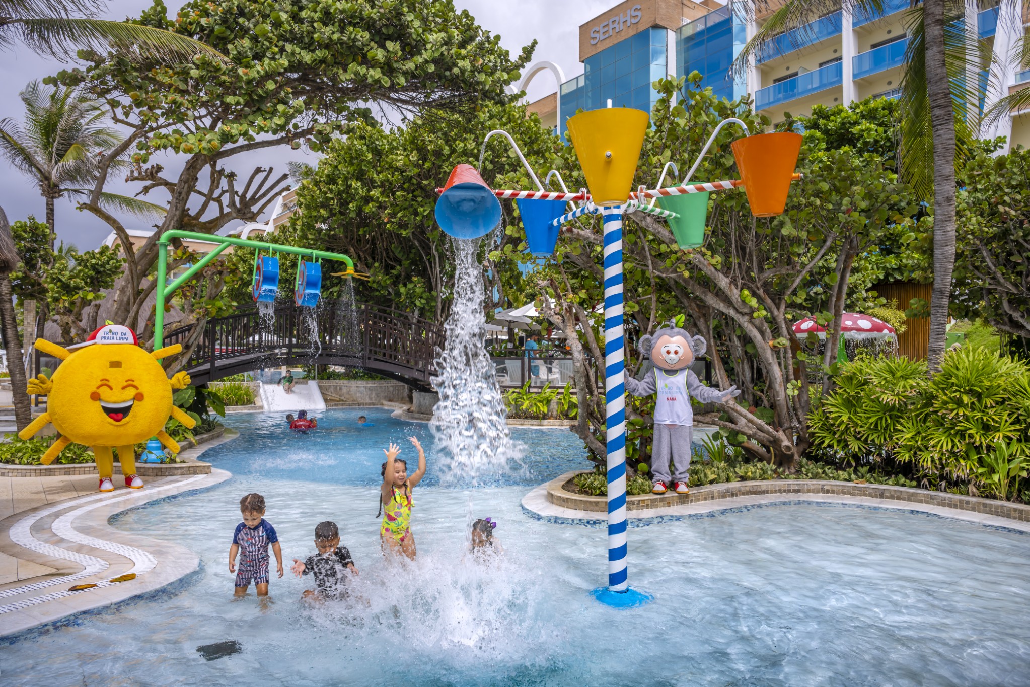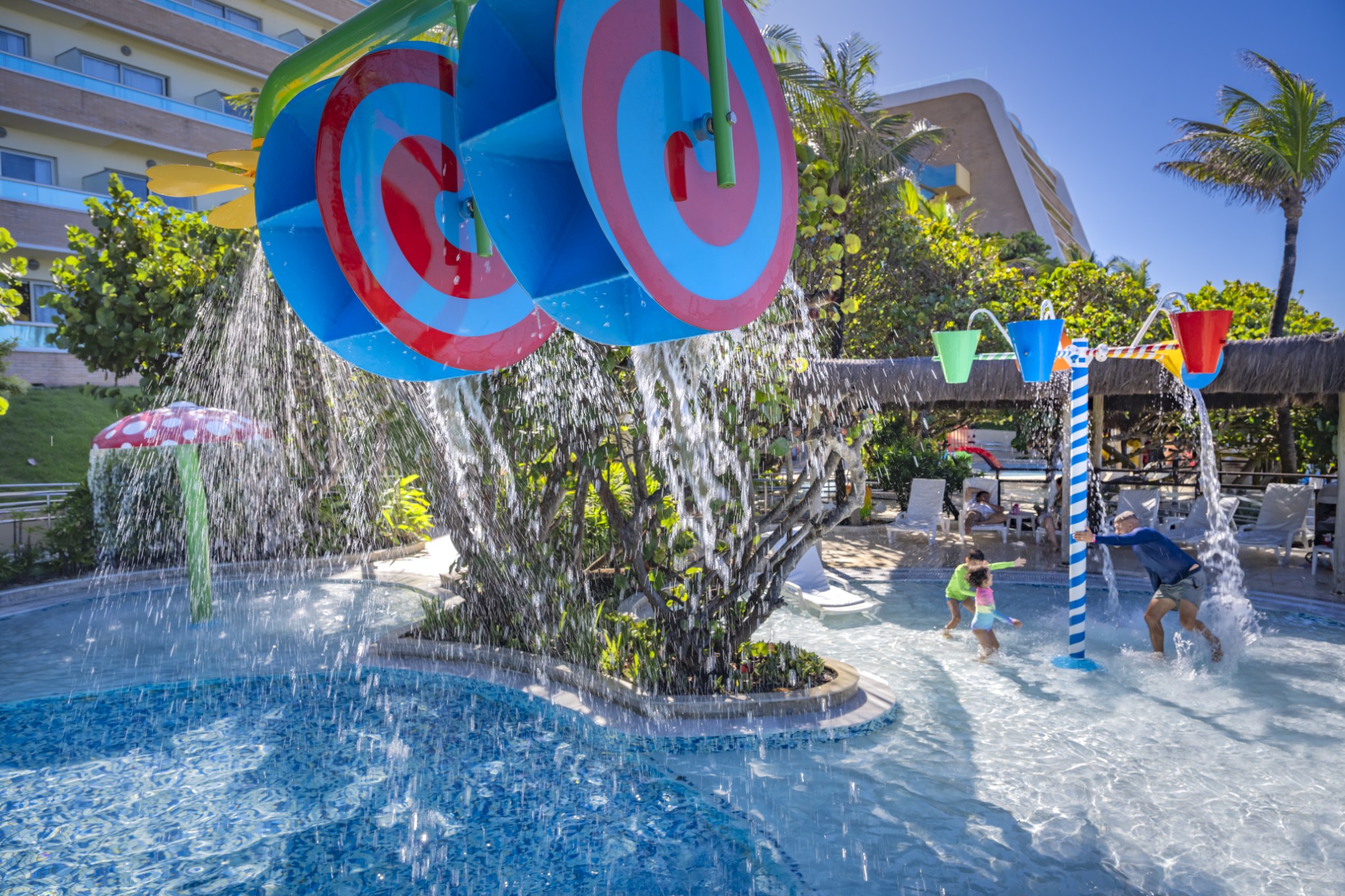 Localizadas em frente ao Kids’ Club, as piscinas infantis contam com diversos atrativos, como toboágua, escorregadores, chuveirinhos, balde maluco e brinquedos aquáticos, garantindo diversão com segurança.