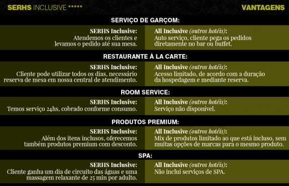 Benefícios exclusivos para hóspedes SERHS Inclusive