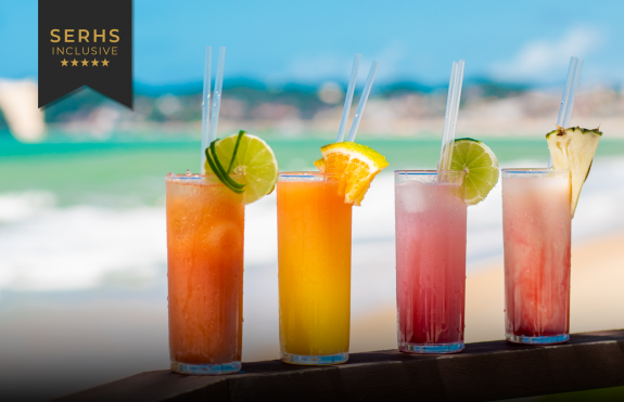 Desperte seus sentidos com o variado leque de bebidas disponíveis no SERHS Inclusive, servidas individualmente em todos os restaurantes e bares* do resort.