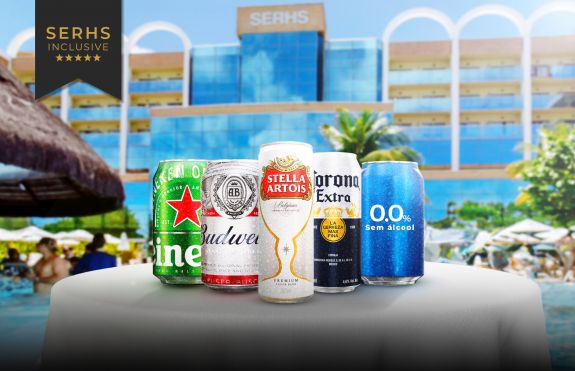 – Cervejas: Heineken, Stella Artois, Corona, Budweiser e 0% álcool