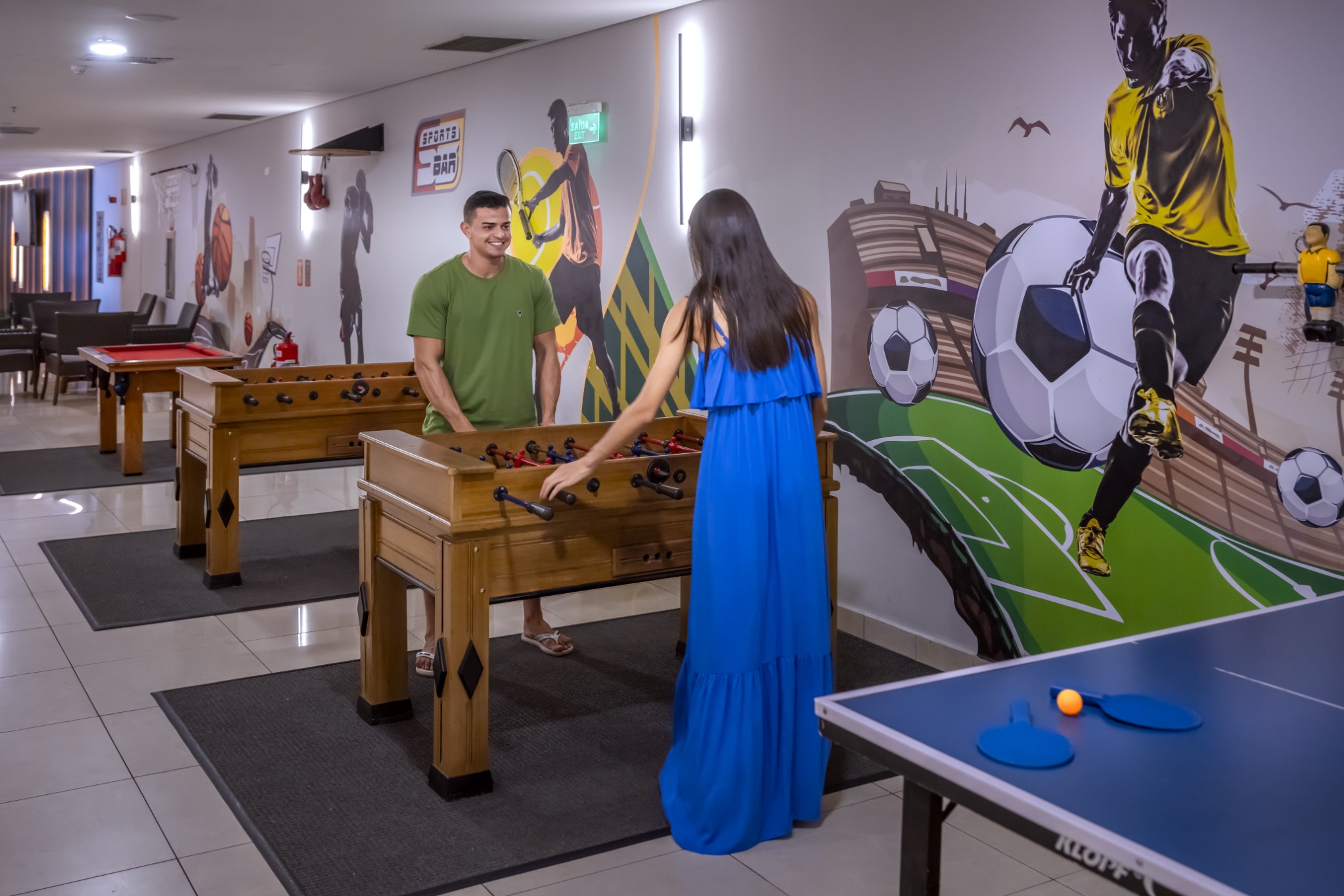 Com ambiente moderno e acolhedor, reúne salão de jogos como sinuca, pebolim (totó), tênis de mesa, jogos de tabuleiro e um charmoso cyber café, criando o equilíbrio ideal entre lazer e diversão.
