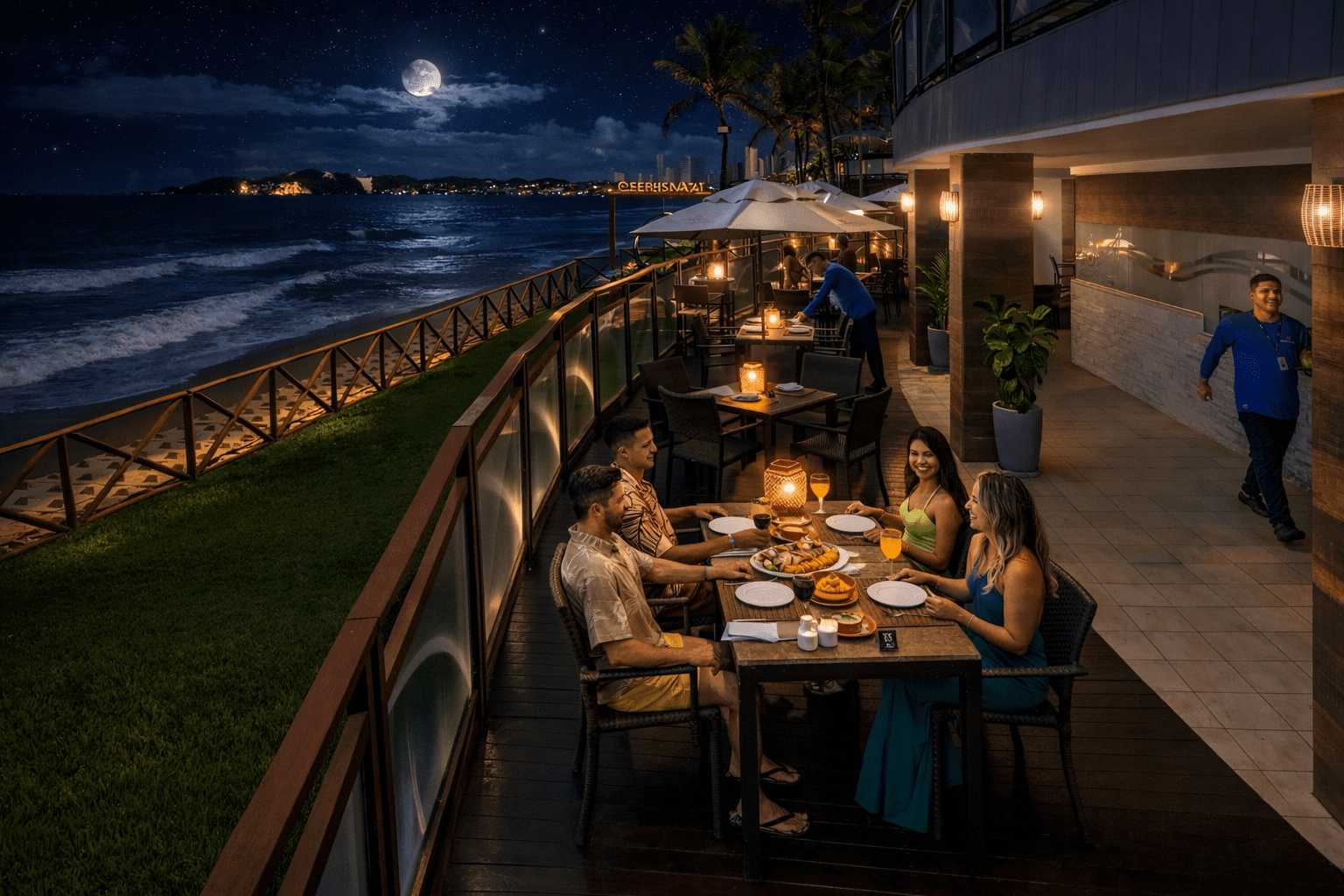 Com uma nova experiência à noite, o Jangada traz consigo uma proposta que une boa gastronomia, vista privilegiada e o clima único das noites à beira-mar. Um jantar voltado à cozinha brasileira com influência mediterrânea e regional, valorizando peixes, camarões, carnes grelhadas e sabores afetivos, preparados com ingredientes frescos e atenção aos detalhes.
